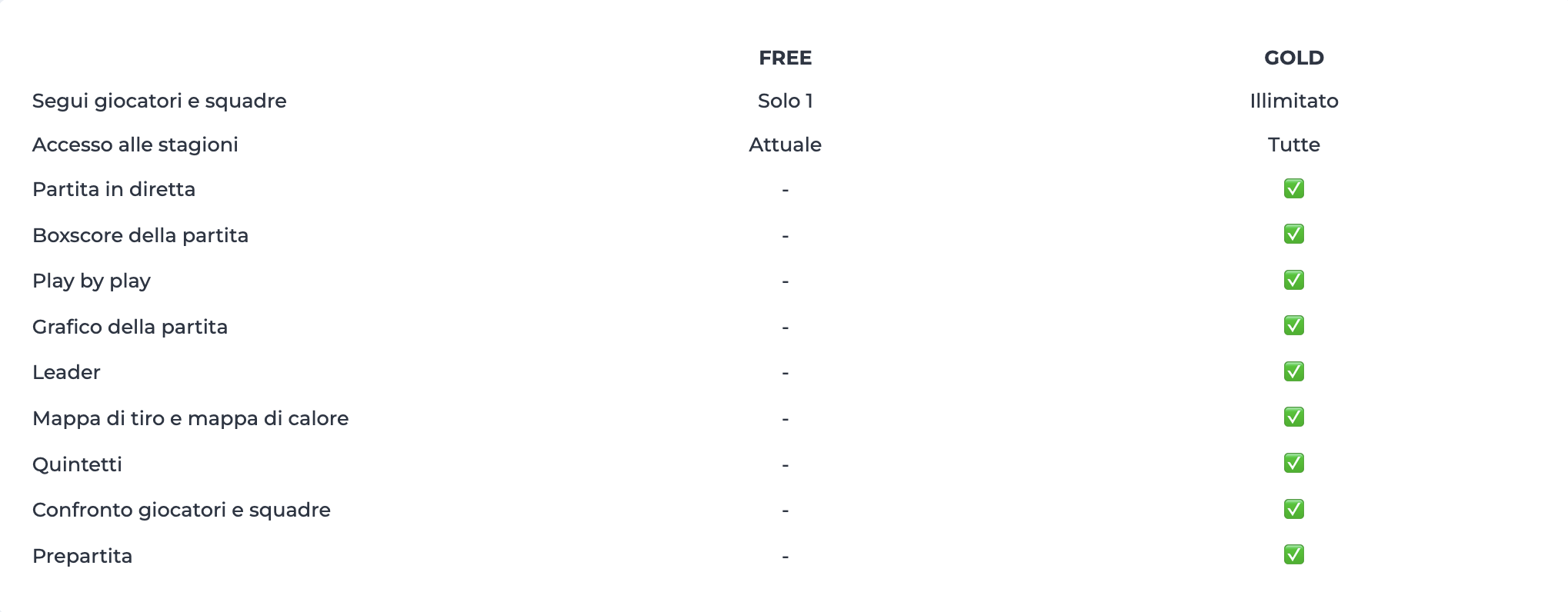 Per i tifosi che vogliono approfondire statistiche e dati avanzati, abbiamo servizi in abbonamento che permettono a NBN23 di continuare a migliorare l’esperienza della comunità cestistica. Questa è la nostra unica fonte di reddito, poiché offriamo tutti i nostri servizi gratuitamente alla federazione.